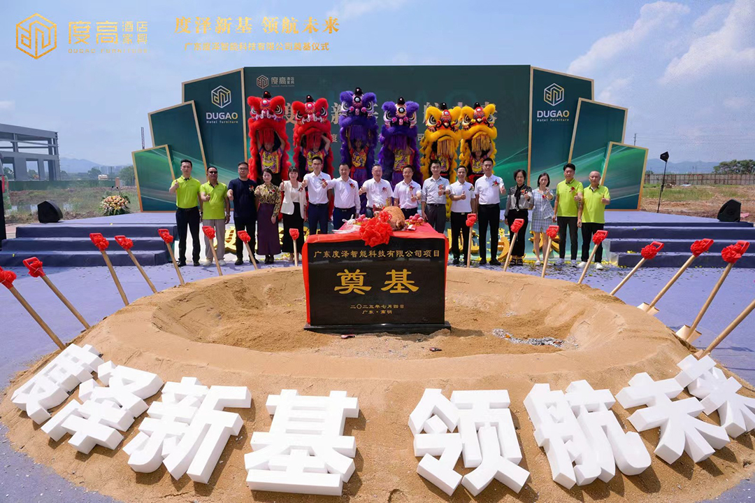2025年7月4日上午,以「度泽新基 领航未来」为主题的广东度泽智能科技有限公司奠基仪式,于佛山高明这片热土上璀璨启幕。这一盛事不仅标志着度高酒店家具集团迈入全新发展纪元,更彰显了企业在探索酒店家具行业创新发展路径上的坚定决心与澎湃动力,正稳步迈向产业链价值高地。