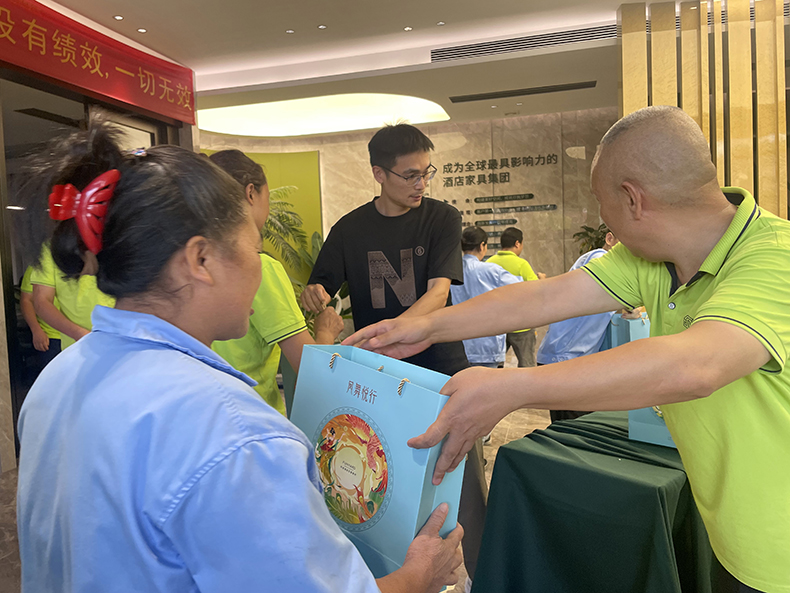 从酒店客房家具的设计打样,到公区固装家具的精细组装,度高家人们以责任与匠心对待每一道工序。此次中秋福利的发放,进一步激发了大家的工作热情,也为度高家具成为更多星级酒店的合作供应商筑牢团队根基。