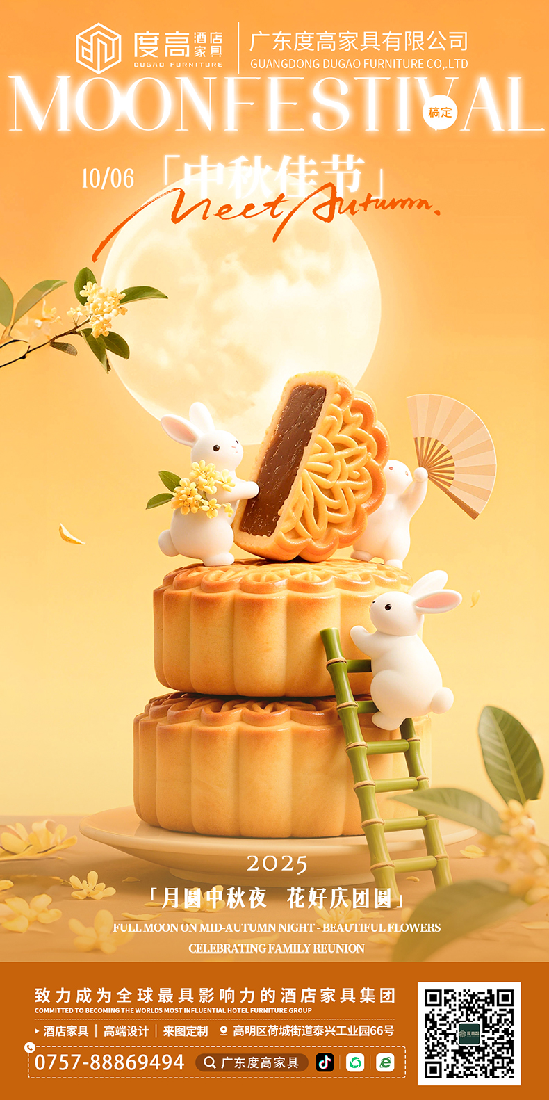 海上生明月,天涯共此时。当国之华诞遇上家之团圆,当金秋盛景邂逅人间烟火,值此中秋与国庆双节到来之际,度高酒店家具贴心准备了精美的中秋礼盒,以爱之名,以心为礼,共赴一年一度团圆之约!