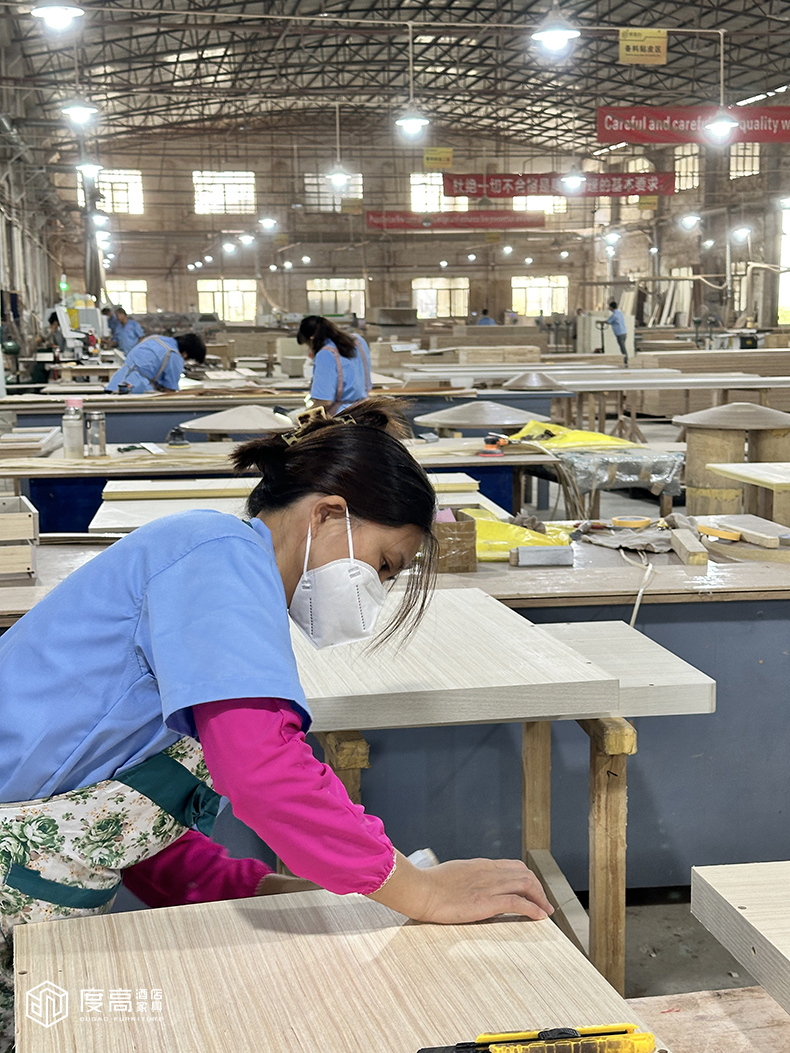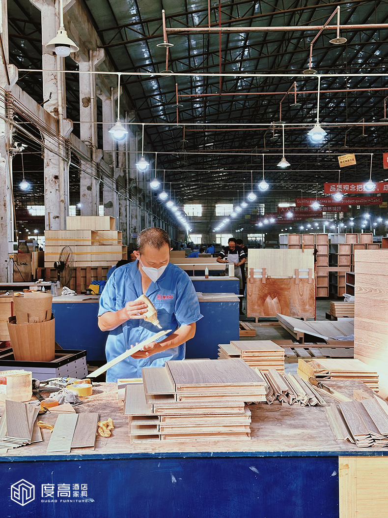 度高家具坚持绿色设计、绿色生产理念,精心选材,采用优于E1级环保标准材料,执行高于国家标准的检测体系,从源头阻断污染风险,让健康守护融入酒店空间的每一处细节。