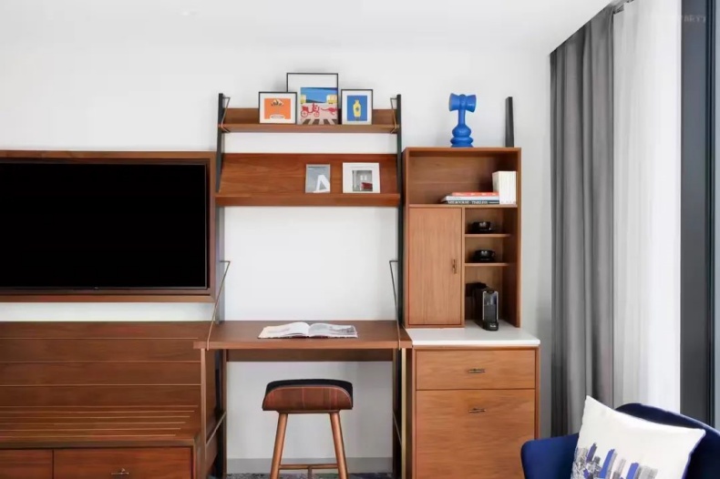 于纯色空间基调中,点缀几抹浓郁色彩提亮氛围