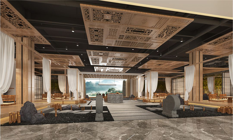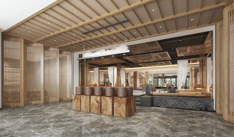 酒店以“千年儒释道,万古山水茶”为设计理念