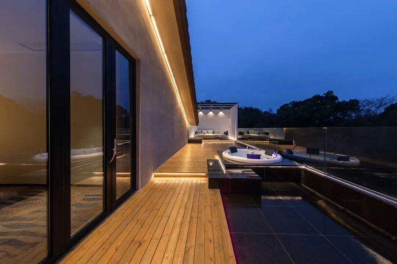 每间房都自带先进的空调、地暖系统、私人露台、茶席