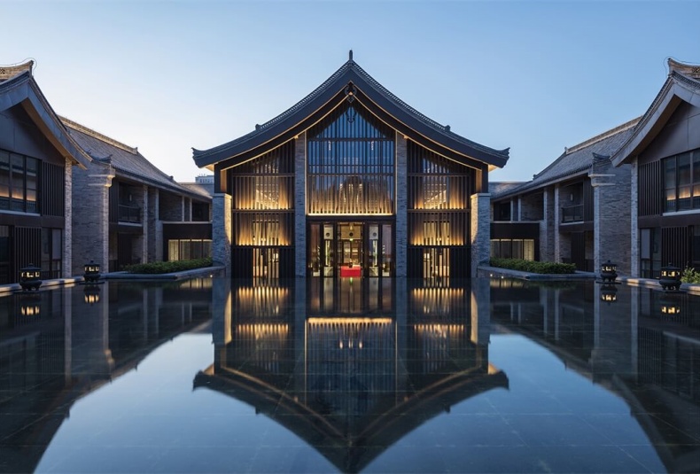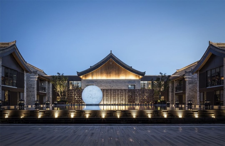 即墨古城君澜度假酒店大堂南侧的景观水景池