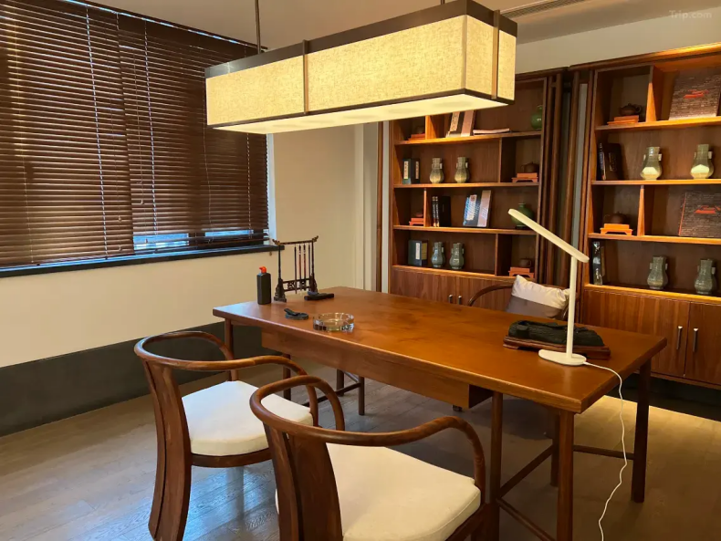 古朴中式的装修风格、雅致的古籍读物和笔架案几