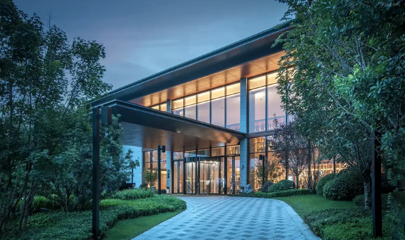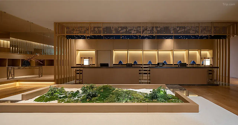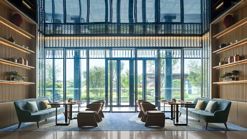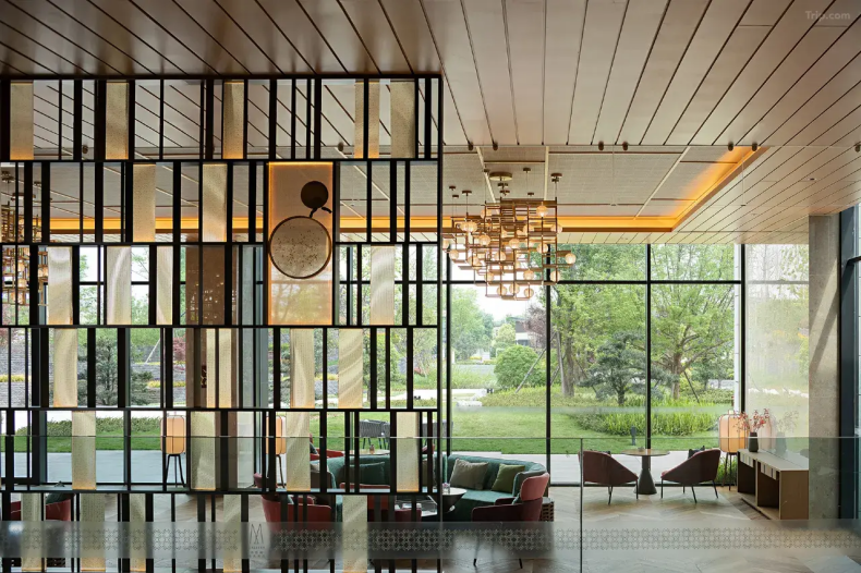 整体采用新亚洲设计风格,融合绿色田野和水元素