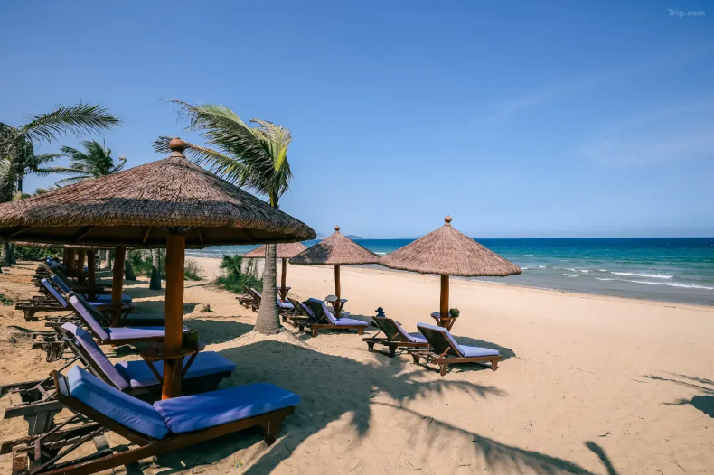 搭配浅米、暖棕等温润色调,呼应沙滩、椰林的海岸意象