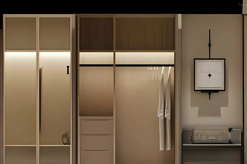 内部分层收纳结构可容纳出行衣物,凸显简约调性